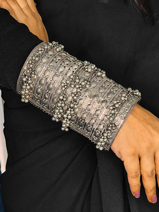 Antique Silver Black Finish Oversized Peacock Jhumkas