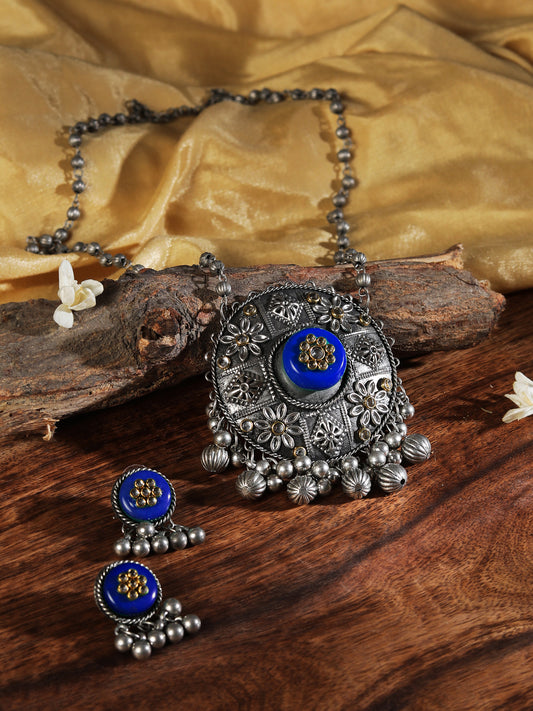 The Floral Poppy Ring and Earring Set in Blue & Pink
