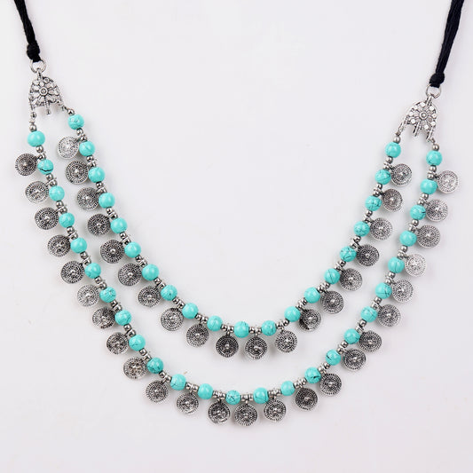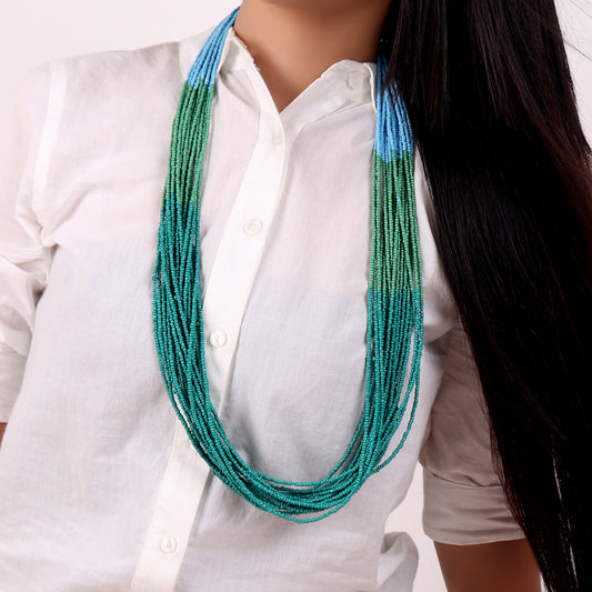 Boho Beaded Necklace with three color punch (Green & Blue)