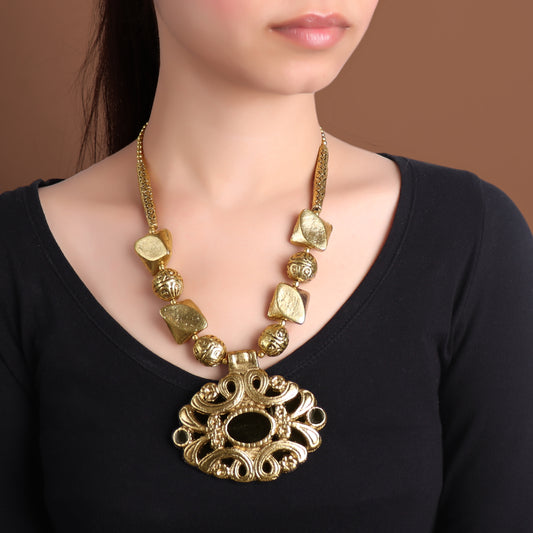 Floral Punch Round Brass Pendant Set in Dual Tone
