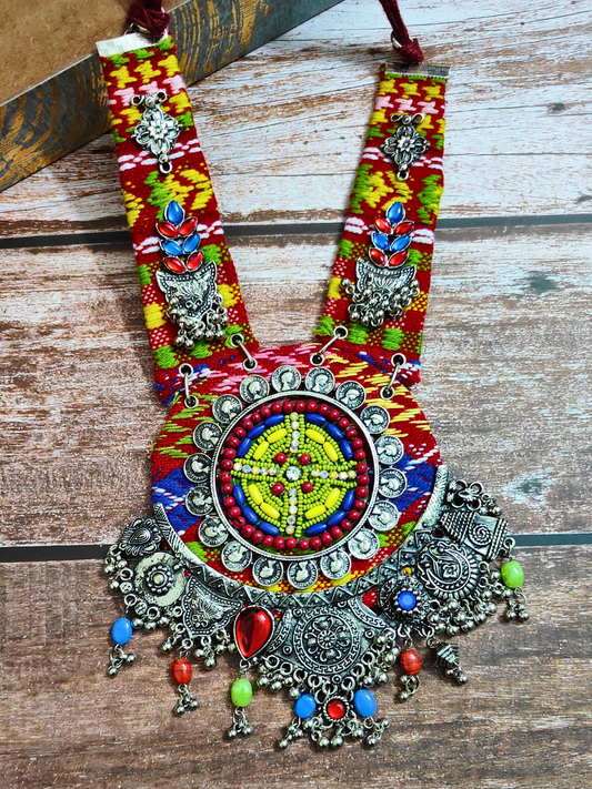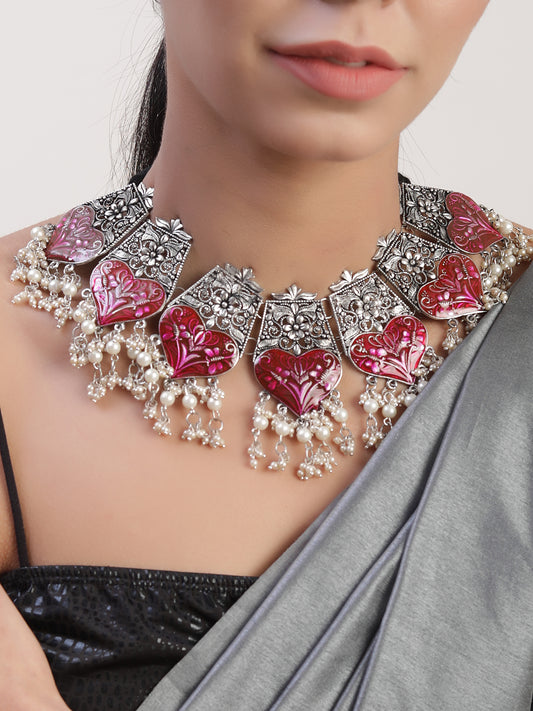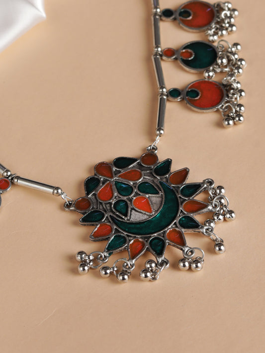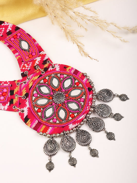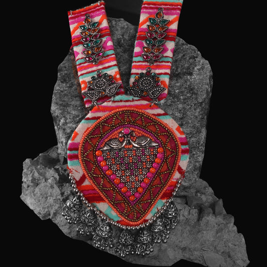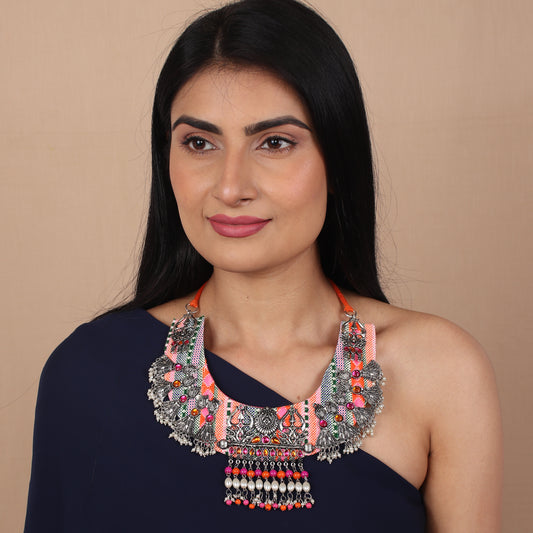 The Exclamatory Meena Necklace Set in Pink & Orange