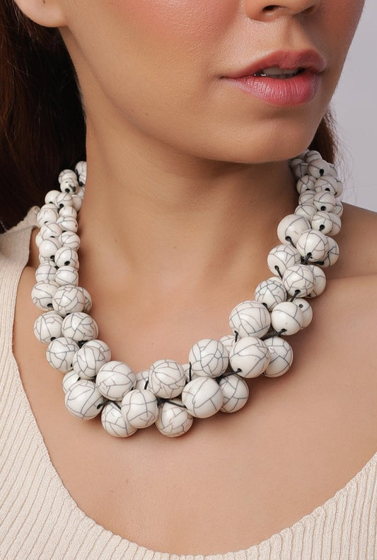 Boho Beaded Necklace with three color punch (Pink & Orange)