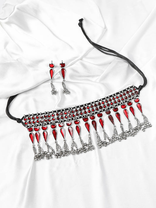 The Boho Pixelated Necklace Set in Shades of Red & Pink