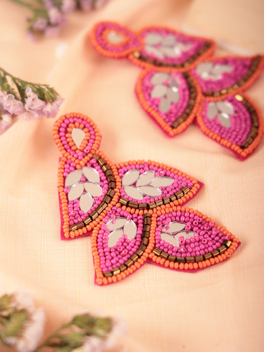The Beady Fauxy Diamonds Earrings in Pink & Orange