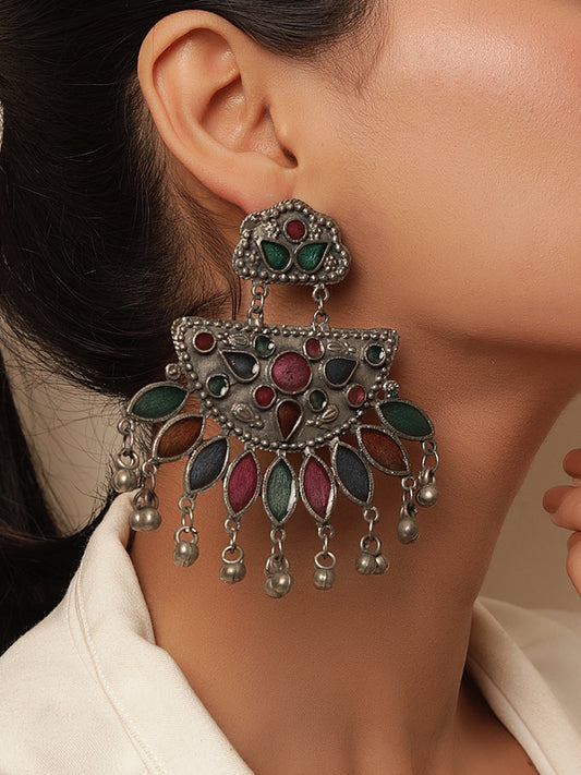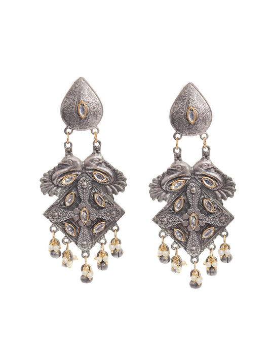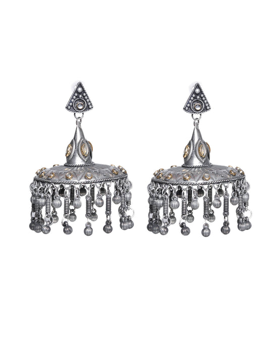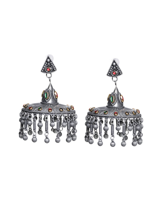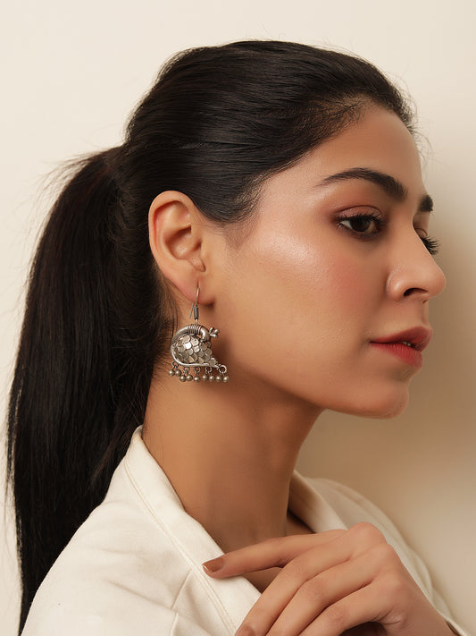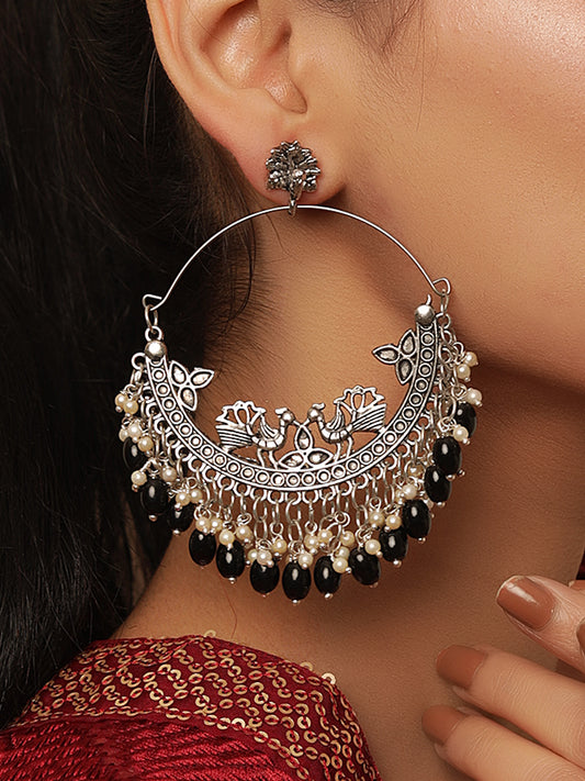 Antique Silver Black Finish Oversized Peacock Jhumkas