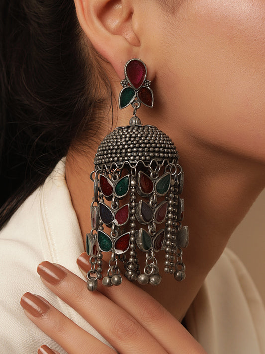 Antique Finish Floral Fiesta Meenakari Jhumkas