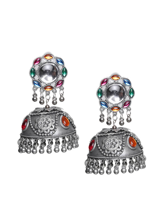 Antique Finish Meenakari Studded Jhumkas