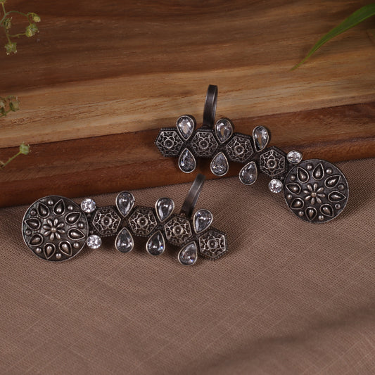 Antique Silver Black Finish Traditional Geometrical Earcuff