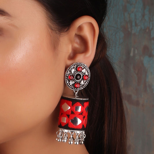 The Lantern Silver Look Alike Earring with Red Stone