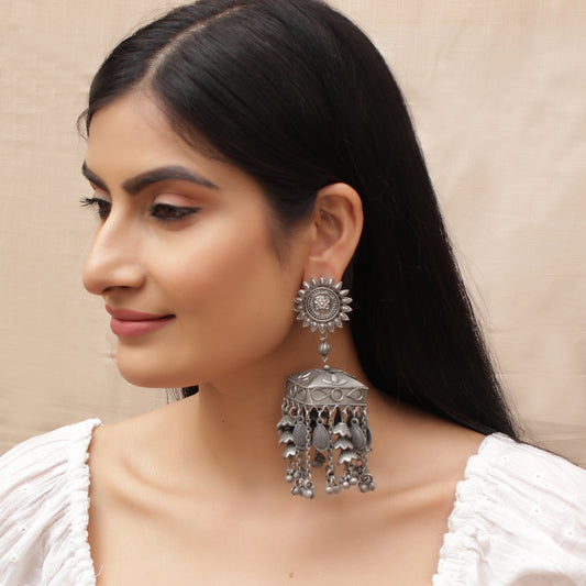 Antique Silver Cutesy Surya Frill Jhoomar Earring