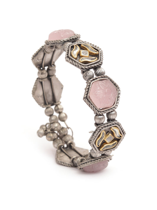 The Sassy Kundan Biscuit Bracelet with Pink Stone