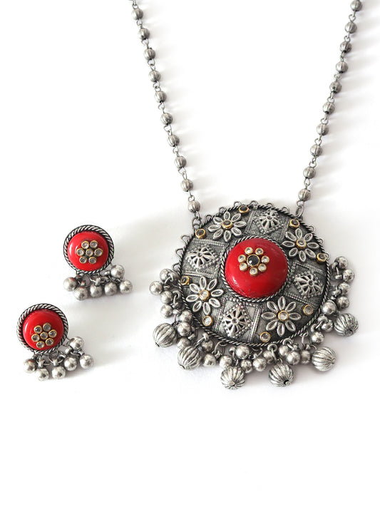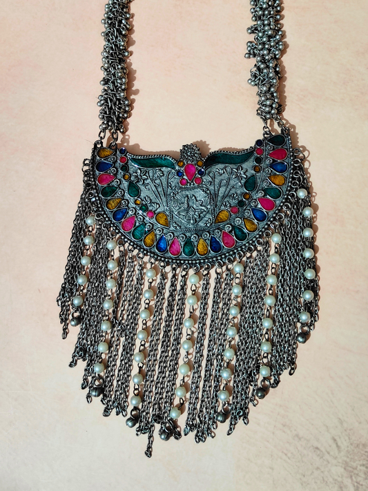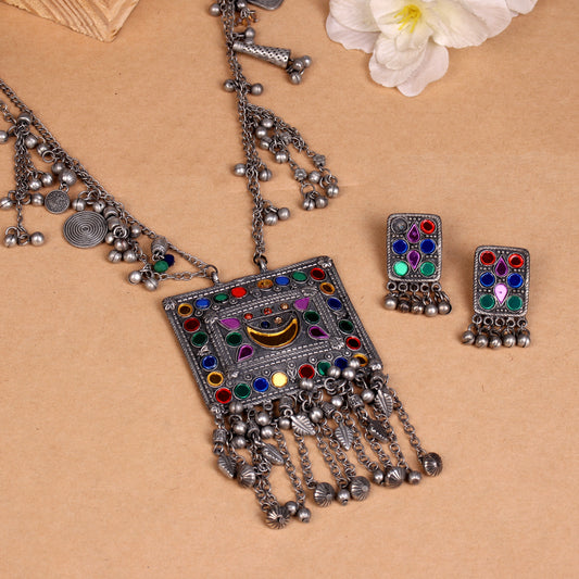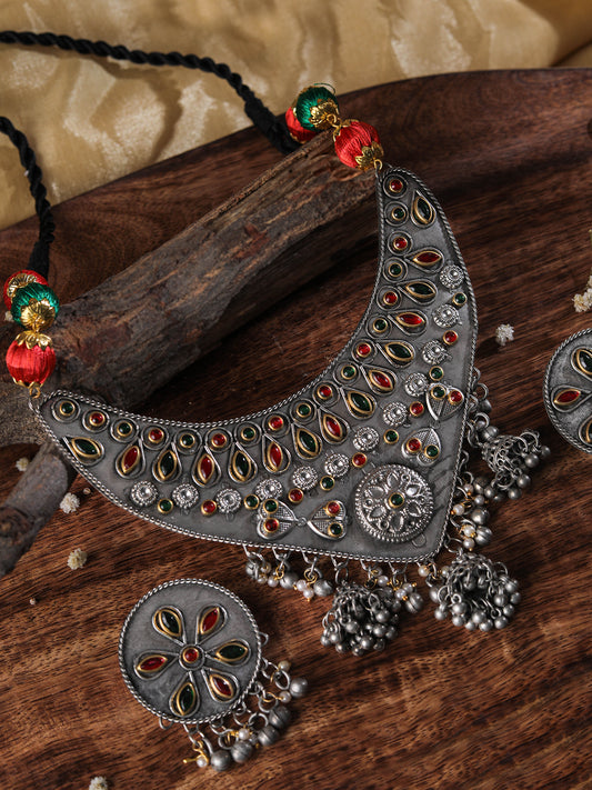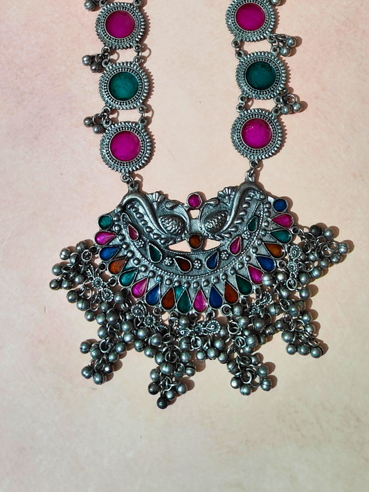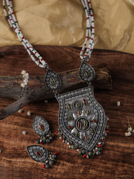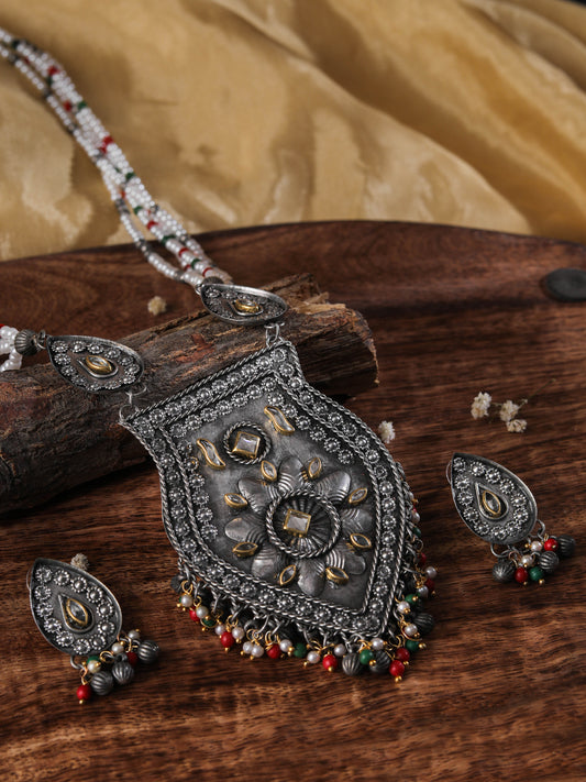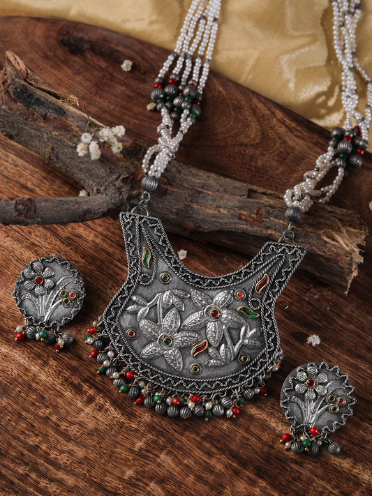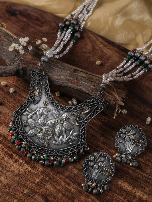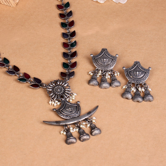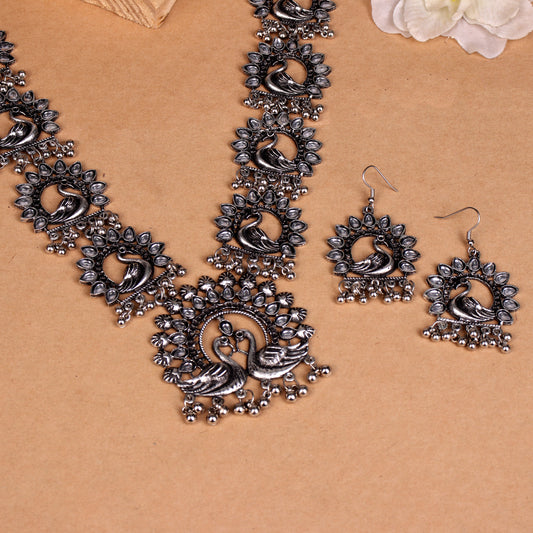 The Soothing Avian Silver Oxidized Necklace Set