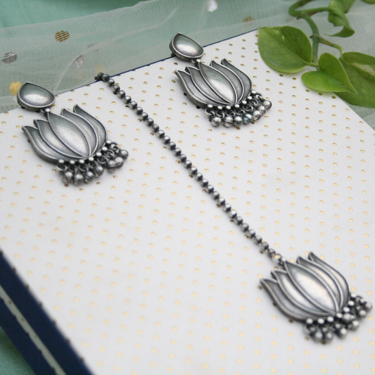 The Silver Lotus Maang Tika and Earring Set