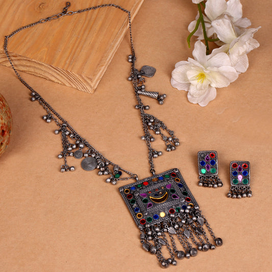 The Afghani Necklace Set of Abundance in Turquoise Blue, Pink & Cream