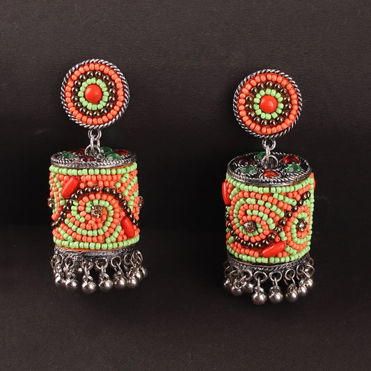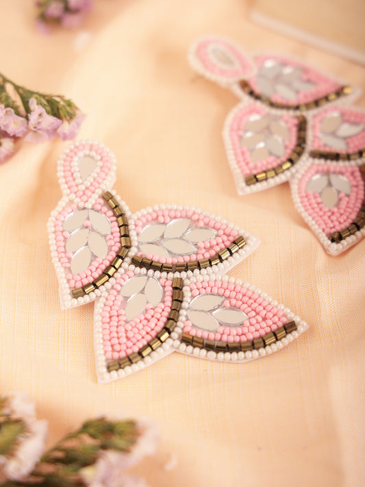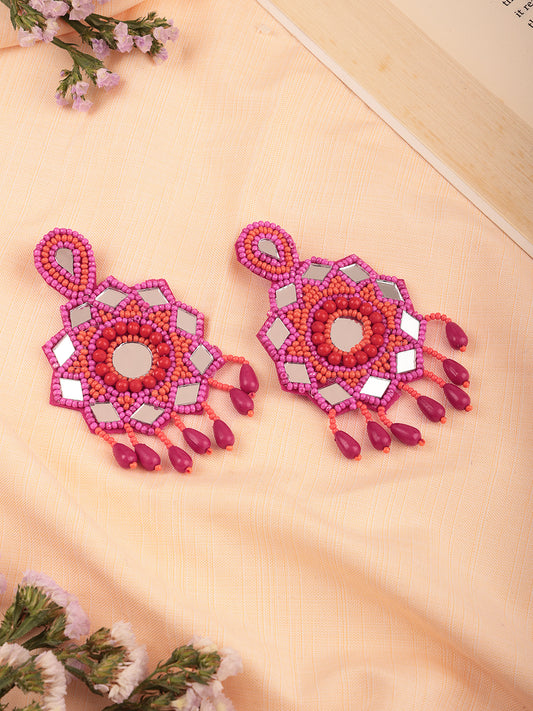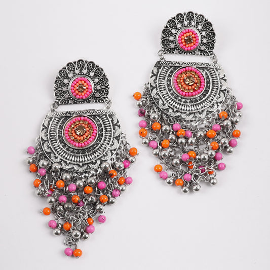 The Beady Fauxy Diamonds Earrings in Pink & Orange