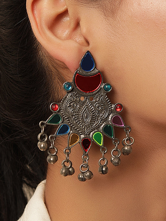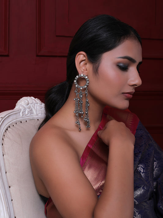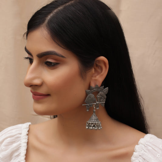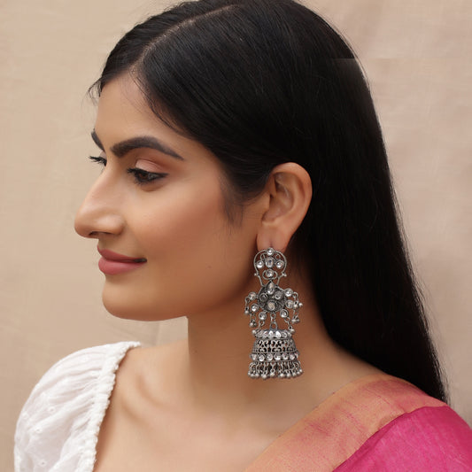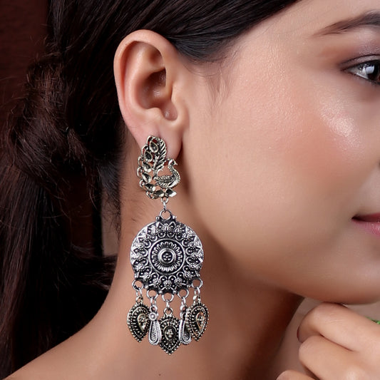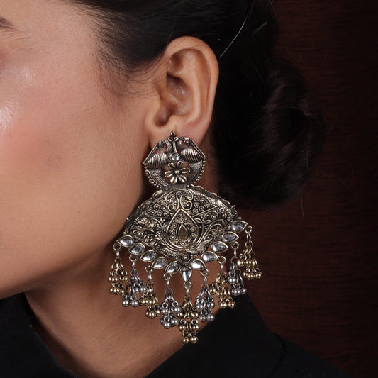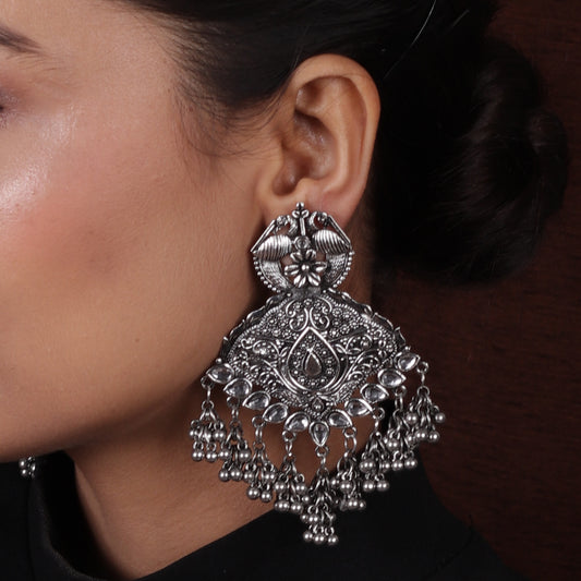 Antique Silver Black Finish Oversized Peacock Jhumkas