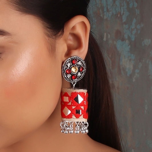 Crescent Rhinestone Afghani Earrings in Red and Orange