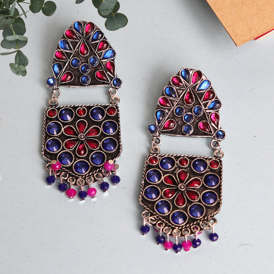 The Beady Fauxy Diamonds Earrings in Shades of Blue