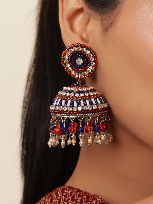 The Flamboyant Fiery Fairy Jhumkas in Blue & Orange