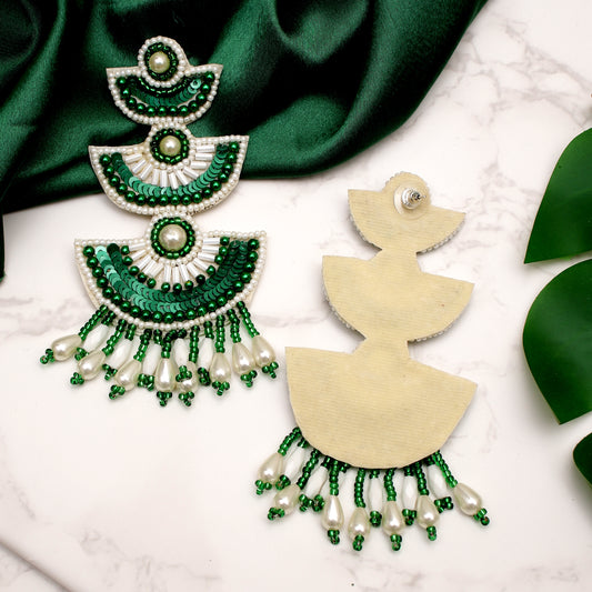 The Vibrant Gleamy Pearl Earrings in Green & Cream