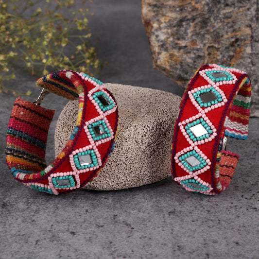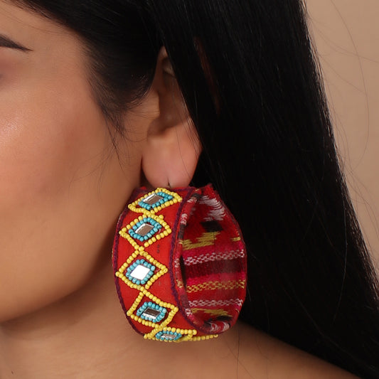 Crescent Rhinestone Afghani Earrings in Red and Orange