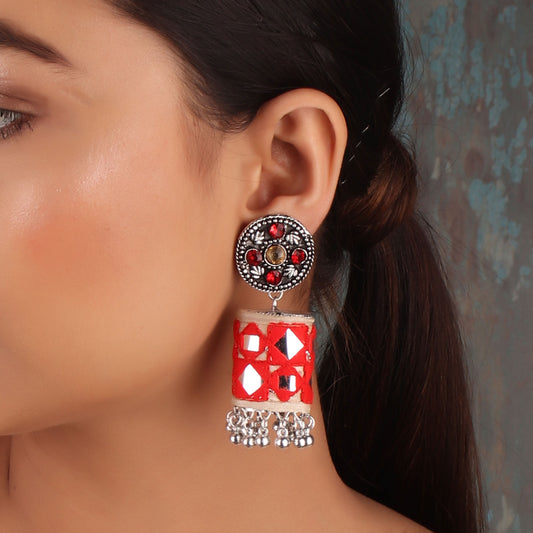 Rectangle Mirror Earrings in Red & Black