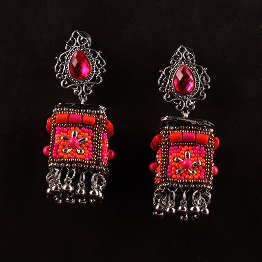 The Dazzling Stone Beaded Earring in Pink & Orange