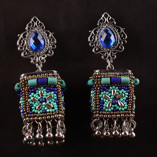 The Dazzling Stone Beaded Earring in Shades of Blue