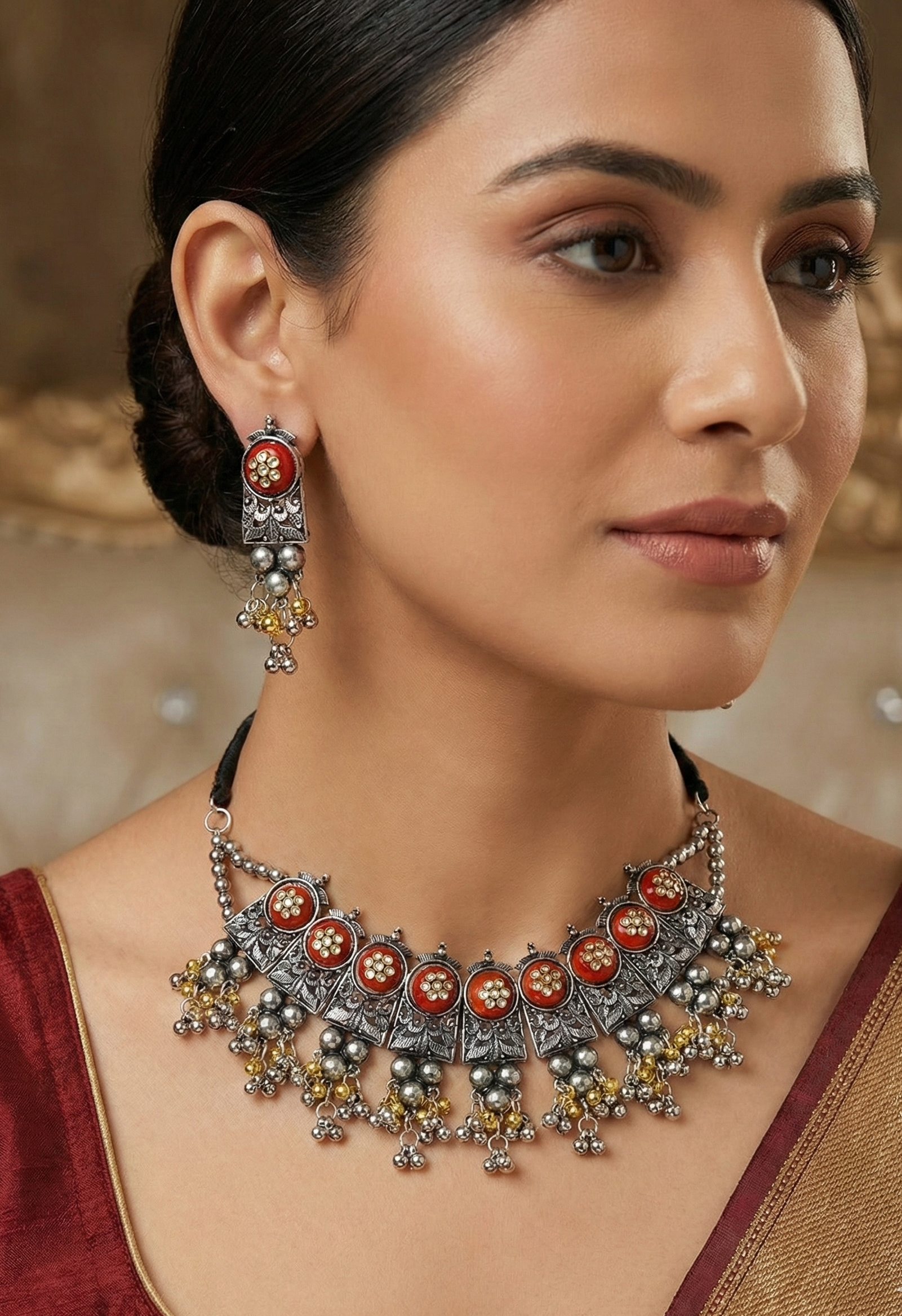 Presenting this beautiful gorgeous Choker set that is bound to be your BFF. Chokers are love and when they are designed with precision and care, this is sure to give you a look that makes you a star. The perfect recipe of an eloquent look is to match this Choker up with an equally stunning earring, and here in Cippele, we ensure that you don’t have to struggle to find that perfect match. The classy and sassy earring is equally gorgeous and graceful to give you an elegant look. A perfect accessory for your ethnic or fusion dress. Step out and be let the spot light be on you!
