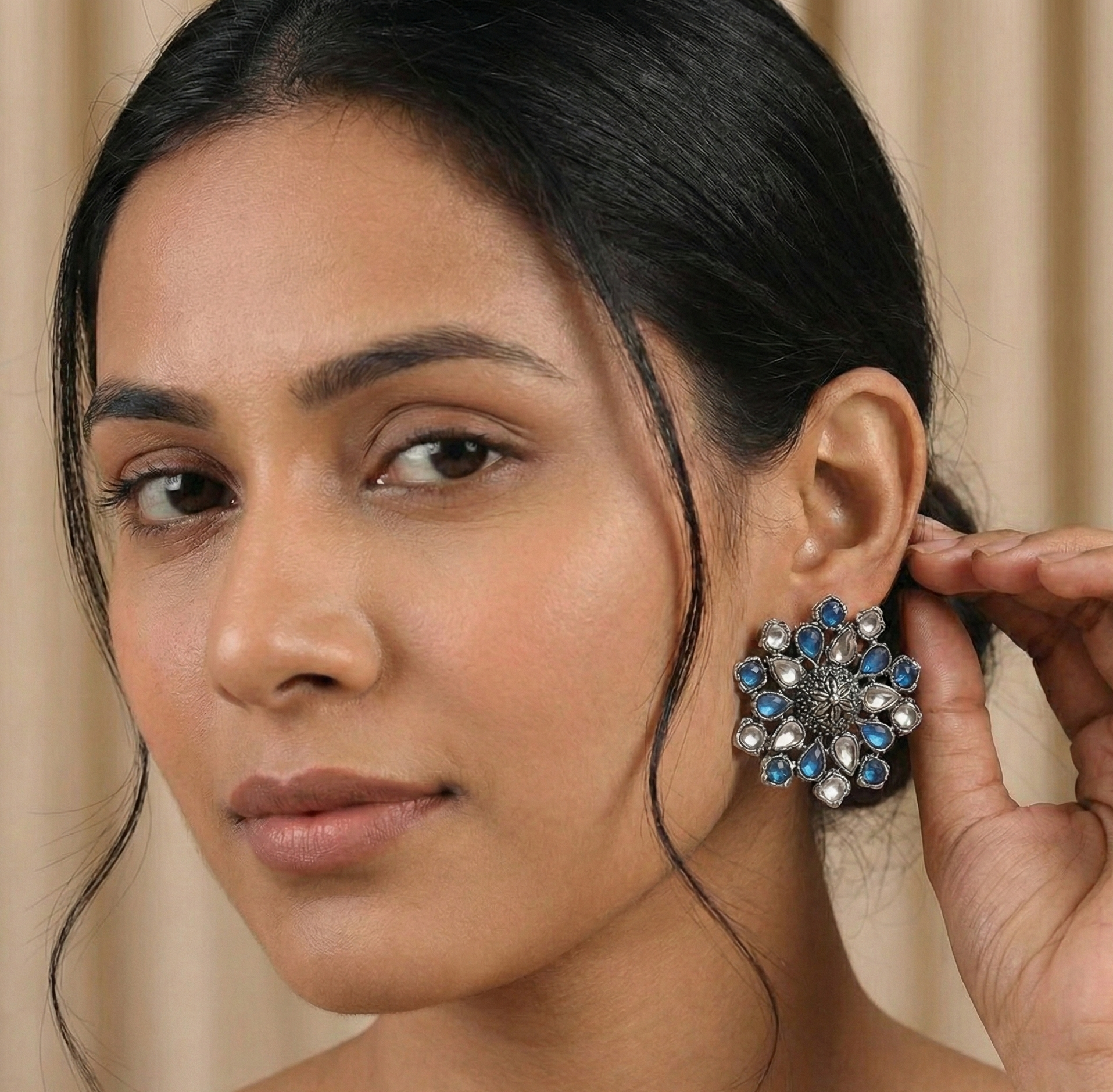 A majestic looking stud does not has to be fancy. The Pearl Hive studs is one such earring which is elegantly designed. The center of the Earring is a beautiful metallic art. To add the grace, the art is surrounded by handpicked artificial dual tone pearls. The cluster of pearls makes it amazingly beautiful. This is a must have for showing off your grace!